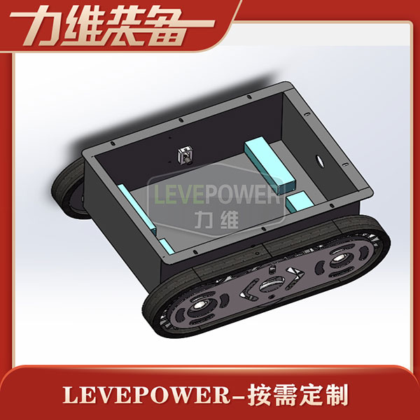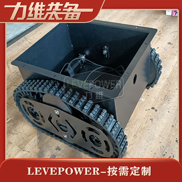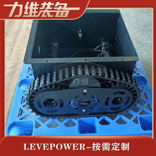 橡膠履帶底盤長849mm,履帶底盤寬600mm,履帶底盤高338mm,無線遙控履帶底盤搭載48V500W直流永磁無刷電機,RV渦輪蝸桿減速機動力更強,爬坡更有勁。