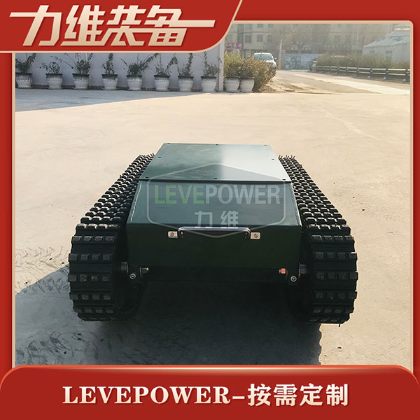 特種橡膠履帶底盤長1086mm,履帶底盤寬650mm,履帶底盤高382mm,無線遙履帶底盤搭載48V350W直流無刷永磁電機,RV50渦輪蝸桿減速機,動力更強。履帶底盤采用48V50AH鋰電池,續(xù)航時間更長。履帶底盤框架采用鋼板箱體焊接而成,底盤承載力大,是一款全地形履帶底盤。